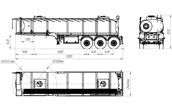 25 000 литров, переменное сечение, шины 425/85R21/6+1, рессорная или пневматическая подвеска, утепление 50 или 100 мм