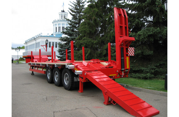 45200 кг, шины 395/85R20 или 445/65R22,5 / 6+1, платформа 12000 (12862 до трапов) x 2530 с уширителями до 3030 мм, ССУ 1550 мм, рессорная или пневматическая подвеска, съемные стойки, механические трапы с пружиной