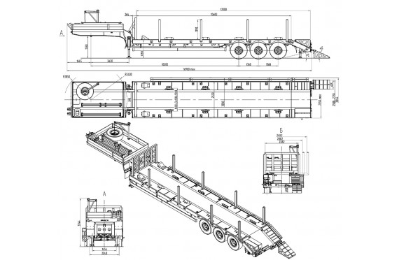 44500 кг, шины 395/85R20 или 445/65R22,5 / 6+1, платформа 12000 (12862 до трапов) x 2530 с уширителями до 3030 мм, ССУ 1510 мм, рессорная или пневматическая подвеска, раздвижные коники, механические трапы с пружиной