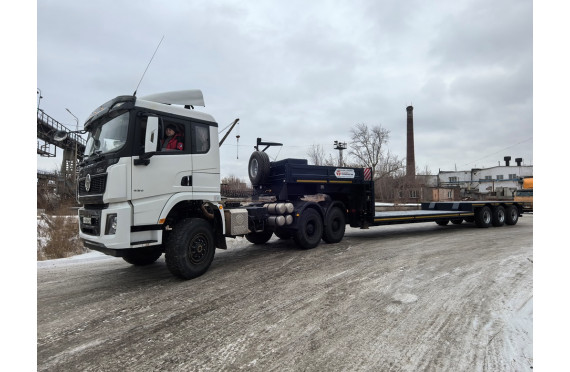 47000 кг, шины 445/65R22,5 / 6+1, платформа без трапов (12000 x 2500 мм, ССУ 1430 мм, пневматическая подвеска, раздвижные коники 1500 мм, съемные борта или без них, в ГАБАРИТЕ по ДЛИНЕ АВТОПОЕЗДА с КАМАЗ 6x6