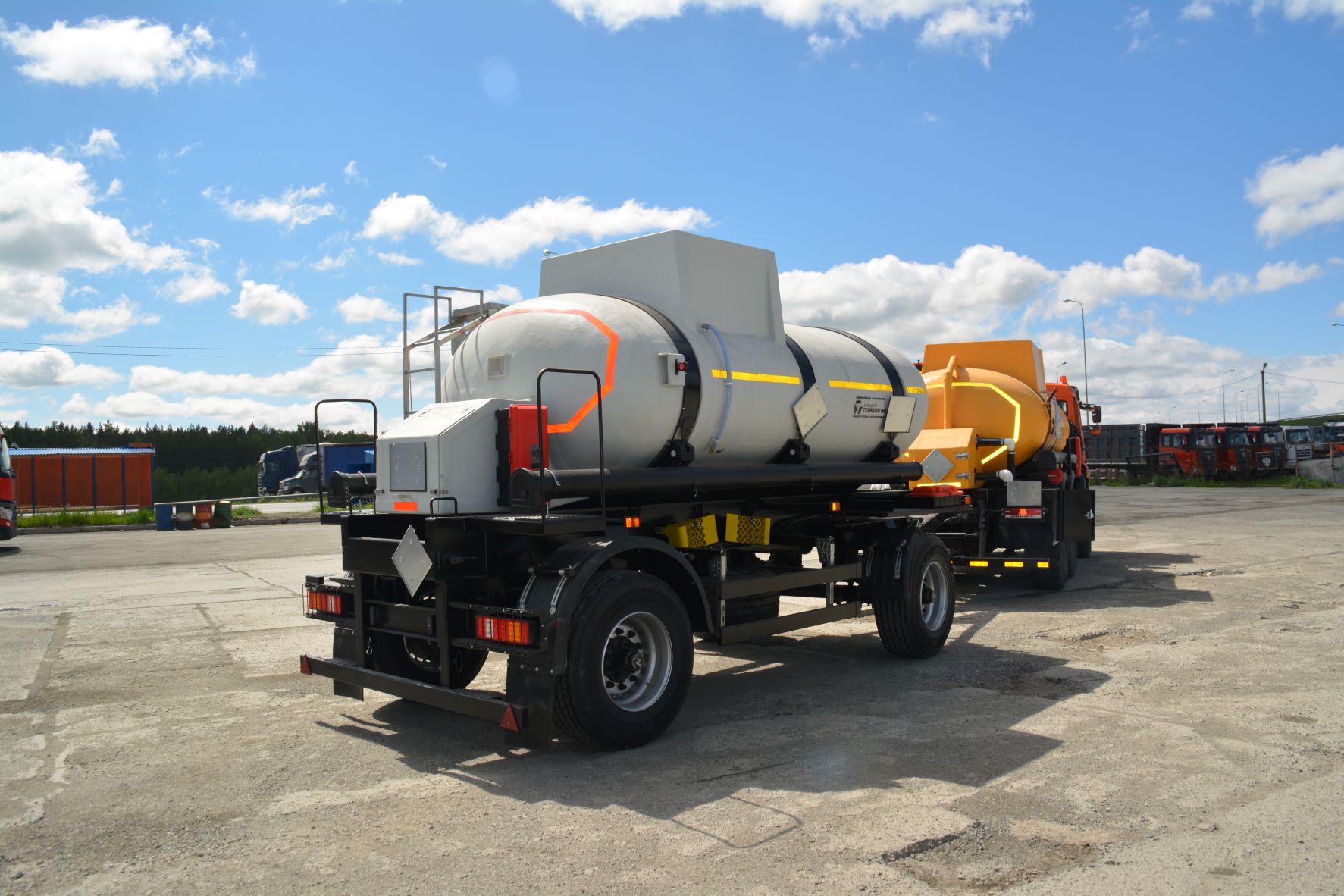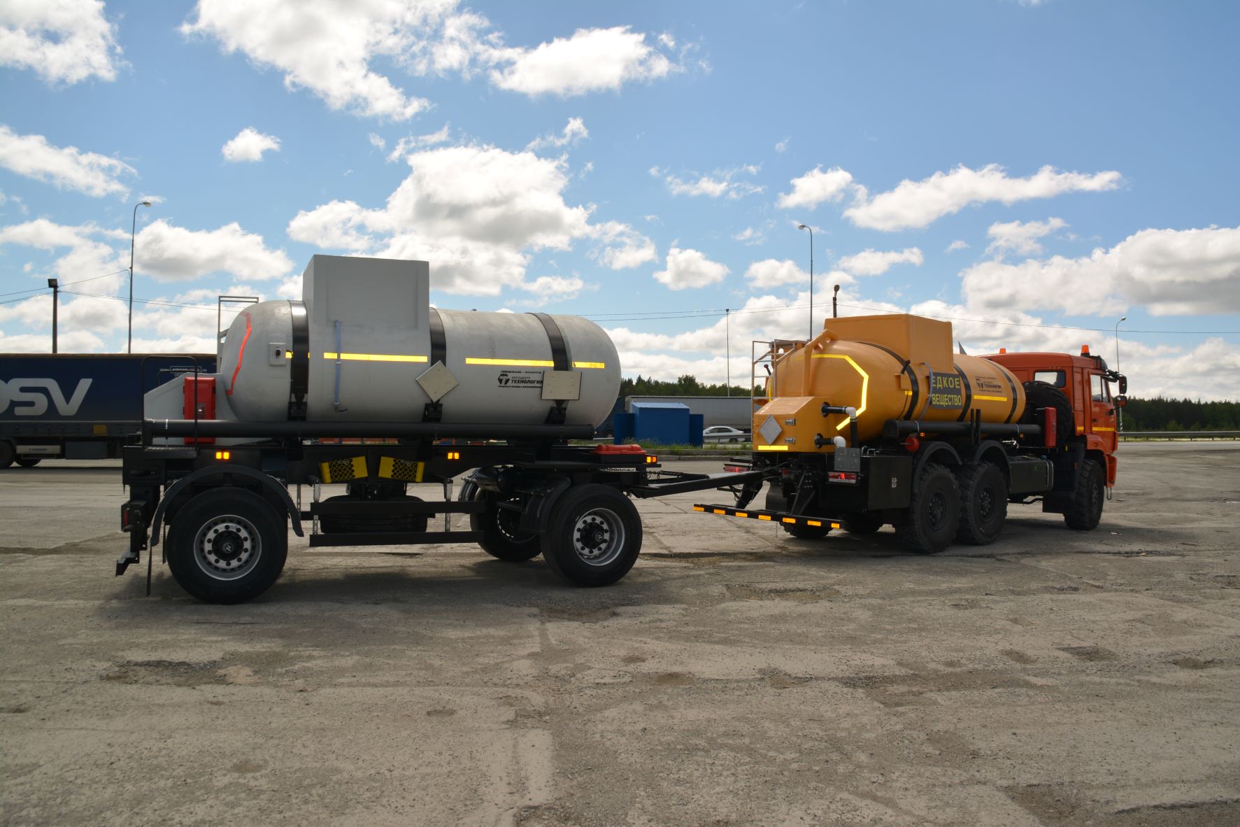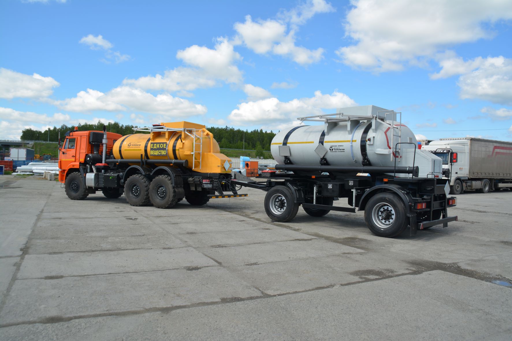 Материал: химстойкое стекловолокно, емкость: 8 куб.м., сечение: эллипсное или круглое, конструкция: однослойная или трехслойная (волокно, утеплитель, волокно), крепление: при помощи стяжных лент, перевозимые жидкости: кислота, нефть, техническая вода, гсм.